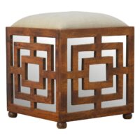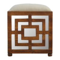 Add this foot stool to your hallway, bedroom or conservatory. Constructed from 100% solid mango wood with a beautiful carving on the sides and upholstered in a cream linen seat pad for seating provding comfortability. It is the perfect addition for a home which is versatile and can be incoorporated with other furniture products.