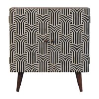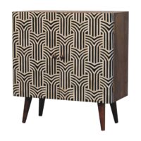 This beautiful boho inspired cabinet has been constructed from 100% solid mango wood and has a honey caramel finish. Other features include bone inlay front doors, and Nordic style legs. The bone inlay is sourced responsibly from deceased animals such as camels, goats, and buffaloes.