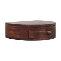 This wall-mounted bedside has been constructed from 100% solid mango wood in a honey caramel finish and offers a unique shaped design with rounded edges. It can be easily mounted on the wall without the fuss of legs. It also features 1 drawer perfect for storing any bits and pieces and keeping them close before bedtime.