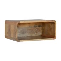This minimalistic wall mounted unit has been constructed from 100% solid mango wood in a oak-ish finish and features 1 open slot perfect for storing any bits and pieces you wish to keep close by before bedtime. It’s neat and clean design can easily be mounted on the wall without the fuss of any legs. Caution! Do not sit on the unit.