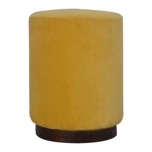 This beautiful and fashionable footstool is the perfect addition to any bedroom or living room. It is upholstered in a luxurious Mustard Yellow cotton velvet fabric and features a walnut finish base. Perfect for putting your feet up, using as a handbag stand, or as an accent piece in the home.