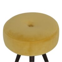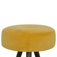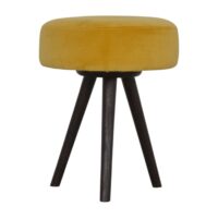This round stool footstool is upholstered in mustard cotton velvet and has Nordic style legs constructed from 100% solid mango wood in a walnut finish. The tripod design is versatile, convenient and can be easily stored away in the home. Every piece of furniture is individually handcrafted and includes swing care tickets explaining the cautions and aftercare instructions.