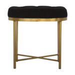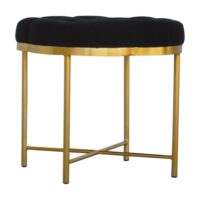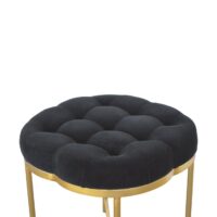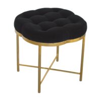 Add this luxurious footstool to any room of the home, clover shaped and upholstered in a beautiful black velvet fabric it features a beautiful deep button design throughout giving the piece timeless elegance and allows it to fit into any type of interior as an accent piece. The base has been constructed from a golden base with a criss-cross design for added definition and allows you to rest your feet.