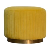 Mustard Velvet Pleated Footstool