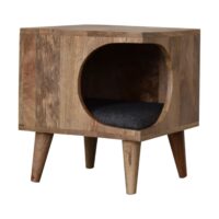 This pet bed has been constructed from 100% solid mango wood in a oak-ish finish and stands on 4 nordic-style legs, it also features a comfortable padded seat indside upholstered from black tweed that we reckon your furry friend will love. Perfect for use in the hallway or living room.