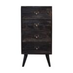 Constructed from solid mango wood in an ash-black finish, this filing cabinet features nordic style legs, and spacious drawers which have paper inserts in the handles, perfect for categorising and sorting files and important paperwork in a study room, home, or office.