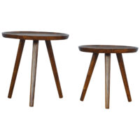 This set of 2 nesting stools have been constructed from 100% Solid Mango Wood with a chestnut finish and a Nordic design which look great alone and as a pair. These tables are versatile, so they can be used in almost any room of the house and be partnered with many styles and finishes of furniture. A perfect piece of accent furniture.