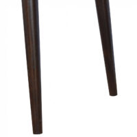 This writing desk is constructed from 100% solid mango wood and has a fine walnut finish. Useful storage space is available for paper, and small bits and bobs with its 3 drawers and a gallery back which has 3 slots. Other features include 4 Nordic style legs, and a decent sized table top to work on.
