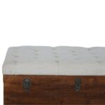 This Lid-up storage box has been constructed from 100% solid mango wood and has been finished in a beautiful chestnut colour. Upholstered in a beautiful white linen and feauturing a deep button design it is the perfect seat which offers comfortability. The lid up compartment can be used to store any extra household belongings you want to keep out of sight and it can be used either in a hallway or bedroom