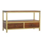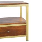 This coffee table offers a sleek and chic design that incorporates both a wooden and industrial design, it features 2 handy drawers at the bottom which are perfect for storing any books, magazines, remote controls and games console accessories. It has been constructed from 100% solid mango wood and finished in a rich chestnut colour, it has a black metal base and stands on 4 strudy legs.