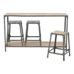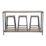 This Iron Kitchen Table is the perfect addition for a kitchen or any type of café/restaurant, it comes with 3 stools which are small and useful and can be easily stored away under the table. It has been constructed from solid mango wood and with a 100% metal iron body.