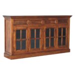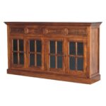 This sideboard is made from 100% solid mango wood and has a smooth chestnut finish. This product offers excellent storage space with 4 drawers and 2 glazed door cabinets as well as a decent size top to place pictures and special ornaments etc. Add this stunning sideboard to your home.