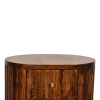 This simple bedside offers a contemporary style with its distinctive stripe design. It has been constructed from 100% solid mango wood in an chestnut finish and features 2 small drawers for convenience in the bedroom.