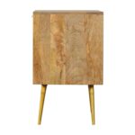 This bedside has been inspired by a clean and modern finish design. It has been constructed from 100% solid mango wood in an oak-ish finish and its main feature is the grey cement drawer front with a beautiful golden brass inlay and 4 gold Nordic style feet which compliment the wooden body perfectly. It has 1 drawer for storing any bits and pieces before bedtime and an open slot for placing any books or magazines for quick access. It can be partnered with the other pieces from the collection or stand graciously alone.