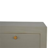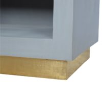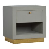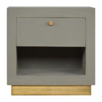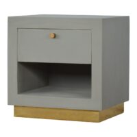 This bedside has been inspired by a clean, modern finish design. Constructed from Mango wood with MDF sides its main feature is the cement finish with the beautiful golden base and detail which compliments the bedside beautifully. It has 1 drawer for storing any bits and pieces before bedtime and an open slot for placing any books or magazines for easy access.