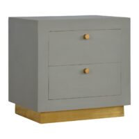 This bedside has been inspired by a clean, modern finish design. Constructed from Mango wood with MDF sides its main feature is the cement finish with the beautiful golden base and detail which compliments the piece beautifully. It has 2 drawers for handy storage and 2 round gold knobs providing easy access into the drawers.
