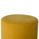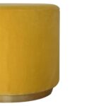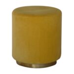 The beautiful and fashionable footstool is the perfect addition to any bedroom or living room. It is available in several beautiful colours and has been upholstered in a luxurious mustard yellow cotton velvet fabric featuring a gold brass base giving the piece a nice contrast. Perfect for putting your feet up, using as a handbag stand or just as an accent piece in the home.