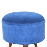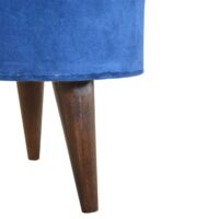 The beautiful and fashionable footstool is the perfect addition to any bedroom or living room. It is available in several different colours and has been upholstered in a luxurious royal blue cotton velvet fabric perfect for putting your feet up, another feature of this is the 3 Nordic style legs in a walnut finish. You can use it as a handbag stand or just as an accent piece in the home.
