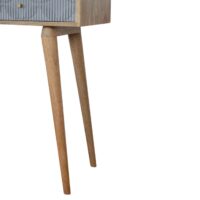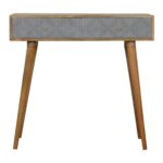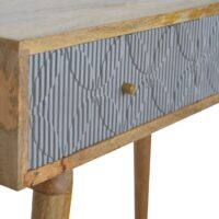 Add this lovely console table to your hallway or living room. It features a beautiful hand carved design on the drawer fronts and has been constructed from 100% solid mango wood in an oak-ish finish with grey hand painted door fronts. It can also be used in any part of the home and can be matched well with different styles and finishes of furniture.
