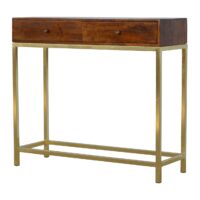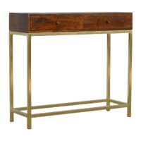 Bringing elegance to the industrial collection, this 2 drawer console table is constructed from solid mango wood and 100% metal iron. It has two handy drawers which provide a stylish stow away for all of your bits and bobs, its minimal design makes it a perfect accent piece for your hallway, kitchen or living room. Other features include round knobs, sandblast oatmeal finish top and pewter finish on the legs.