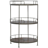 This three-tier round shelf brings an industrial edge to modern interiors with its minimalist metal frame and rustic wooden surfaces. Handcrafted by skilled artisans, the design balances durability with refined aesthetics, offering open storage that’s both practical and visually striking. Perfect for showcasing decor, storing essentials, or adding vertical interest to a room, it stands as a statement piece built to last for generations.