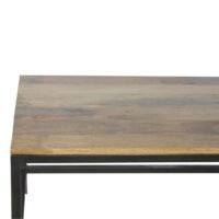 This rectangular coffee table has a refined shape and is topped by a lovely smooth oak-ish finish. The perfect way to show off an industrial style design, this modern coffee table fits into any type of interior. The top is constructed from 100% solid mango wood and the base/legs are made from 100% metal iron which have a pewter finish.