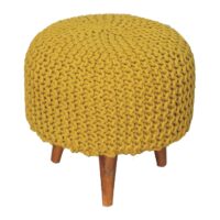 The elegant and compact design of this round footstool makes it a perfect addition to any style of room. It is light and small and easy to carry, as well as stable and durable ensuring long-time use. It features nordic style legs which have an oak-ish finish and a lovely mustard woven top, giving it an overall clean and modern finish.