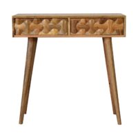 Constructed from solid mango wood in an oak-ish finish, this handsome console table will look extra stylish in the hallway/living room. Some features include 2 drawers, shiny brass knobs, and nordic style legs. It’s a classic yet highly functional product, so make sure to pair it with other products from the gorgeous Kita range.