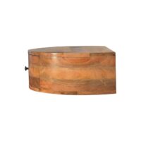 The bigger brother to IN1296. This wall-mounted bedside has been constructed from 100% solid mango wood in an oak-ish finish and offers a unique shaped design with rounded edges. It can be easily mounted on the wall without the fuss of legs. It also features 1 drawer perfect for storing any bits and pieces and keeping them close before bedtime.