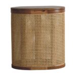 This stylish Rattan Lid-up Storage Stool combines a rattan base with a smooth oak-ish finish body. Constructed from 100% solid mango wood, it is a handy piece for storing everyday utility items, as well as being a seat in the hallway or bedroom.