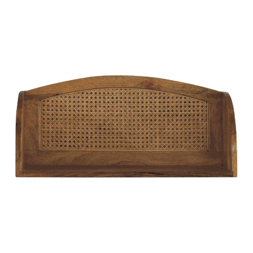 This stylish Rattan Wall Mounted Shelf combines a rattan back with a smooth oak-ish finish body. Constructed from 100% solid mango wood, it is a handy piece for displaying ornaments, plants or candles in the hallway or the bedroom.