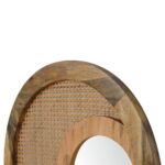Hand crafted from solid mango wood in a oak-ish finish this round mirror is subtle, uncomplicated and timeless. Featuring a ratten design and a chunky frame it is perfect to use in the hallway, bedroom or living room.