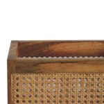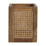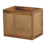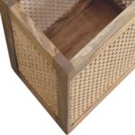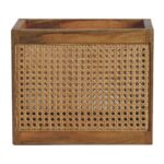 This stylish Rattan Storage Basket combines a rattan front with a smooth oak-ish finish body. Constructed from 100% solid mango wood, it is a handy piece for storing everyday utility items, meaning it will come in handy in the bathroom or bedroom.