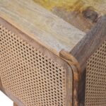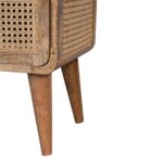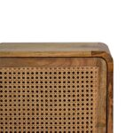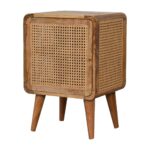 The Larissa woven bedside will stand out in your interior thanks to its understated look and subtle originality. The beautiful grain pattern and rattan design do not make this piece any less functional. In fact, it features a door with 2 drawers inside which offer plenty of storage space. It has been constructed from 100% solid mango wood in an oak-ish finish and features nordic style legs.