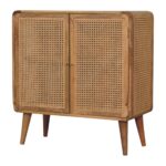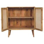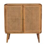 This stylish Nordic Rattan cabinet combines woven front doors which have a smooth oak-ish finish body and legs. Constructed from 100% solid mango legs it features space inside perfect for storage, a shiny knob on the drawers, and nordic style legs. Make full use of this cabinet in the living room and partner it with the rest of the collection.