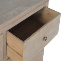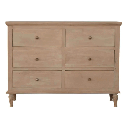 This 6 drawer chest will come in useful all over your home when you need a little bit of extra storage space, with its six drawers that come with ring pull handles made from brass. Suiting most decors, this 100% solid mango wood unit has been built with sustainably sourced timbers and useful for storage to keep your home organised. Other features include a smooth sun bleached finish and hand turned feet.