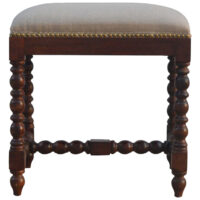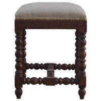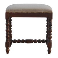 This footstool is a beautiful piece of furniture to add to your home. It is constructed from 100% solid mango wood and upholstered in white lily linen. Other features include antique brass studs around the upholstered top, and hand turned feet which have a smooth light walnut finish.