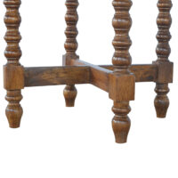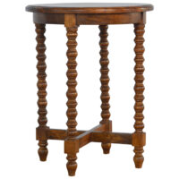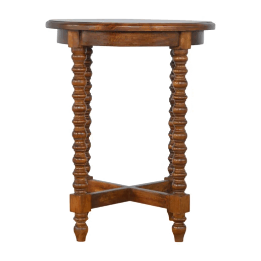 This petite round coffee table is constructed from 100% solid mango wood and has a fine, smooth chestnut finish. Other features include hand turned legs, add this practical and beautiful piece of furniture to your home.