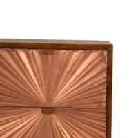 This Manila Copper Chestnut Bedside Table was designed to add a touch of elegance and charm to your bedroom, featuring copper inlay plated drawers and Nordic-style cap feet, this piece has been constructed from 100% solid mango wood and offers a rich chestnut finish and pull-out handles along with surface space to uplift your bedroom look.
