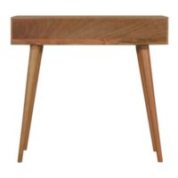This stunning piece has been constructed from 100% solid mango wood and features Nordic-style legs. It provides useful storage with the space of 2 drawers each finished with a shiny knob. The white and navy hand-carved ribbed design is partnered nicely with the finish of the oak-ish wood giving an overall modern and chic look.