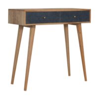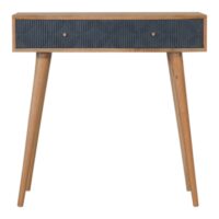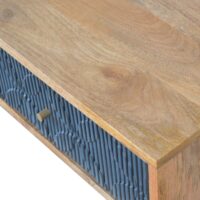 knobs. The navy hand-carved ribbed design is partnered nicely with the finish of the wood giving an overall modern and chic look.