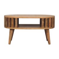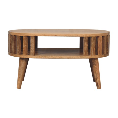 The smaller version of our Ariella Coffee Table boasts a contemporary Japanese design allowing light to shine through and is constructed from 100% solid mango wood in an oak-ish finish. This is a versatile piece and is perfect for use in the living room.