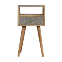 This beautifully designed bedside is constructed from 100% solid mango wood and has a oak-ish finish. Useful storage space is available with 1 drawer with a cement finish with a wood chip design, 1 shelf and a decent sized table top to place any ornaments. Other features include 4 Nordic wood style legs. This is a modern style which will suit most homes.