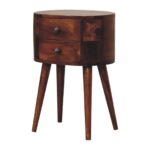 This mini solid wood bedside has been constructed from 100% solid mango wood in a chestnut finish and offers a unique shaped design with rounded edges. It features 2 mini drawers which come with a shiny knob and Nordic-style legs. A great, simple addition to the bedroom.