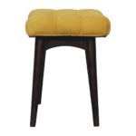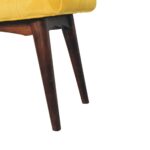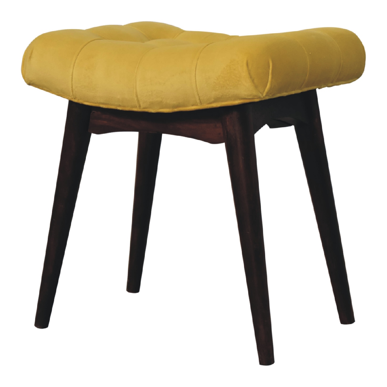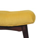 Our Nordic style benches will provide you with style and versatility. This stunning mini velvet bench has been upholstered in a mustard cotton velvet fabric and stands on 4 Nordic style feet constructed from 100% solid mango wood in a walnut finish. This piece can be used in a hallway or as additional seating in your bedroom or living room to create a cozy environment. This petite product is part of Recession Collection.