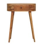 This simple console table is constructed from 100% solid mango wood with a fine oak-ish finish. It features 1 small drawer for nighttime convenience and has 4 Scandinavian style legs to modernize your home, it can also be fitted in tight compact space to go in any type of home interior. This product is part of the Recession Collection.