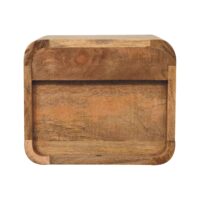 Inspired by our curved range, this minimalistic mini wall-mounted unit has been constructed from 100% solid mango wood in a oak-ish finish and features 1 drawer and 1 open slot. This piece is perfect for storing any bits and pieces you wish to keep close by before bedtime. Its neat and clean design can easily be mounted on the wall without the fuss of any legs. Caution! Do not sit on the unit. This petite product is part of Recession Collection.