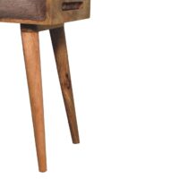This footstool features a tray-style design and 4 Nordic-style legs constructed from 100% solid mango wood. It has been upholstered in a luxurious mocha faux fur, which works as a comfortable seat and can be incorporated into many different interior styles as it offers a very clean and modern design, along with providing a nice contrast between the material and wood.