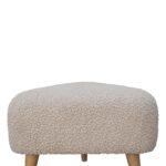 This sophisticated footstool has been upholstered in our new mud boucle fabric which will prove classy in your home. It poses a triangular shaped seat and stands on 4 nordic style legs which have been constructed from 100% solid mango wood in a oak-ish finish.