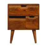 This mini handy bedside has been constructed from 100% solid wood in a chestnut finish. It features 1 drawer and 2 mini removable drawers perfect for storing any bits and pieces. The perfect addition for the bedroom as well as the living room.